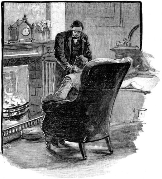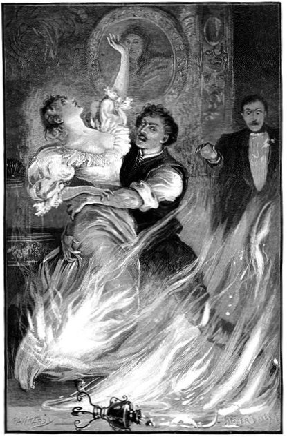 Antonio was in the ante-room. The door was open and he saw the accident. He sprang to Mrs. Mildmay's assistance. He did not attempt to avoid the flames, but rushed directly through the pool of blazing oil, burning his feet and ankles horribly. He seized Mrs. Mildmay, and tore away her dress with his bare hands. He had nothing to wrap around her, for he was wearing no coat at the time, but he clasped her close in his arms, and smothered the flames that had caught her petticoat by pressing her against his bosom. She escaped with nothing worse than a slightly burned finger, but Antonio's hands, arms, feet and ankles were burned to the bone. By this time Mr. Mildmay, who had been in his study, heard his wife calling for help, and made his appearance.