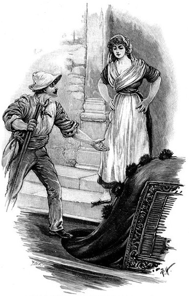 The porter presented Antonio, and asserted that, as a combination of professional skill and moral beauty, Antonio was simply unique. Mr. Mildmay, the Englishman in question, was pleased with Antonio's clean shirt, and Mrs. Mildmay was captivated by his chestnut curls, and the frank, innocent expression of the young fellow's face. He was hired on the spot, with the new gondola which he professed to own, for 150 francs per month, including his board. He was to bring his gondola and his recommendations to the hotel to be inspected that afternoon, and was to begin his duties on the following day, the Mildmays having already secured an apartment in advance of their arrival in Venice.