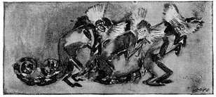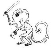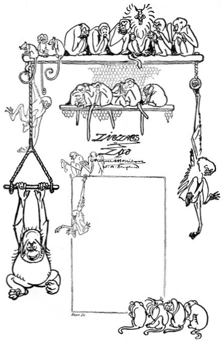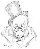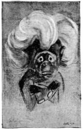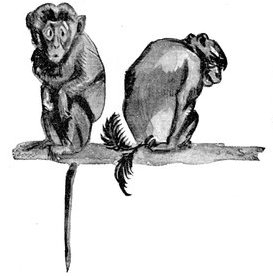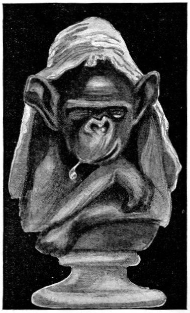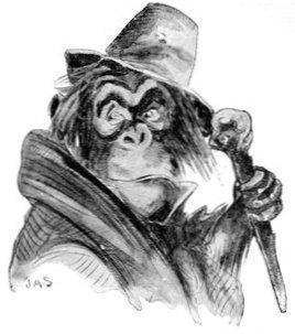 Whence has arisen the notion that monkeys are happy creatures? Probably from the inadequate fact that they pull one another's tails and run away. But a being may be mischievous without being happy. Many mischievous boys are never happy: possibly because the laws of Nature won't permit of half the mischief they are anxious to accomplish. Still, the monkey, at any rate in a state of freedom, is looked upon as a typically happy creature. "And watch the gay monkey on high," says[Pg 458] Bret Harte; and Mr. Kipling addresses the monkey as "a gleesome, fleasome thou," which latter looks like an attempt to make an admissible adjective pass in an unwarranted brother. I have seen monkeys fleasome, treesome, freesome, keysome (opposite adjectives these, you will perceive on reflection), and disagreesome, but cannot call to mind one that looked in the least gleesome. Everything that runs up a fence or swings on a rope is not necessarily jolly, much as the action would appear to justify the belief. Many a human creature has stormed a fence with a lively desire to attain the dogless side, but no noticeable amount of jollity; and a man escaping from fire by a rope wastes no time in unseasonable hilarity, dangle he never so quaintly. Look at their faces; look also at the monkey's face. If a monkey grin, it is with rage; his more ordinary expression of countenance is one of melancholy reflection—of sad anxiety. His most waggish tricks are performed with an air of hopeless dejection. Now, this may be due to any one of three causes, or even to a mixture of them. It may be that, like the boy, he dolorously reflects that, after all, mischief has its limits; that you cannot, so to speak, snatch the wig of the man in the moon, upset the Milky Way, or pull the tail of the Great Bear. Or it may be that a constant life of practical jokes, and of watchfulness to avert them, is a wearying and a saddening thing after all. Or it may be that every ape, meditating on his latest iniquity, tries for ever to look as though it were the other monkey.