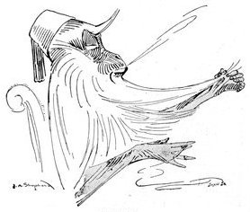 "I—I must confess that I—er—hardly anticipated this—er ——. I was under the impression that we had been dealing with an ordinary human being if you'll excuse my saying so: but, forgive me—I fear the authorities to whom I am answerable will hardly approve of my obtaining information from a—er—a fabulous monster."