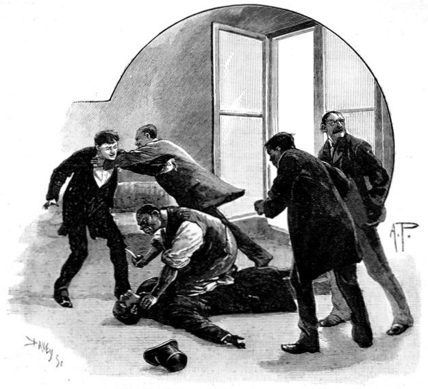 Great excitement was created at this point by prisoner kicking out the back and sides of the dock, and hurling the usher into the gallery; prisoner, however, having apologized and expressed his belief that the incident had been occasioned by a horsefly, the matter was allowed to drop.