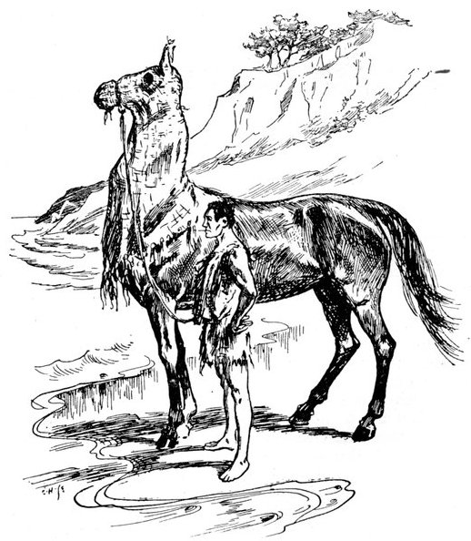 The loneliness of his condition began to prey upon his mind. He had but a single companion in the secluded upland valleys of that deserted island where his forefathers had lived during so many centuries; this companion was his servant, or valet—he also being the sole survivor of his race, the race of hippopaides, or stable boys; from time immemorial the bondmen of the Centaurs and their faithful attendants.