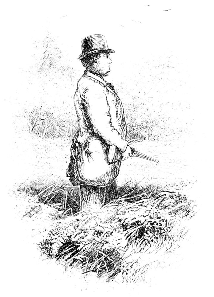 His dog-whistle hangs at his buttonhole. His pocket-knife is a basket of tools in itself, most probably a present from some youthful sportsman who was placed under his care to learn how to handle a gun. The corkscrew it contains has seen much service at luncheon-time, when under a sturdy oak, or in a sheltered nook of the lane, where the hawthorn hedge and the fern broke the force of the wind, a merry shooting-party sat down to a well-packed hamper and wanted some one to draw the corks. Not but what the back of the larger blade has not artistically tapped off the neck of many a bottle, hitting it gently upwards against the rim. Nor must his keys be forgotten. The paths through the preserves, where they debouch on a public lane or road, are closed with high-sparred wicket gates, well pitched to stand the weather, and carefully locked, and of course he has a key. His watch, made on purpose for those who walk by night, tells him the time in the densest darkness of the woods. On pressing a{10} spring and holding it near the ear, it strikes the hour last passed, then the quarters which have since elapsed; so that even when he cannot see an inch before his face he knows the time within fifteen minutes at the outside, which is near enough for practical purposes.
