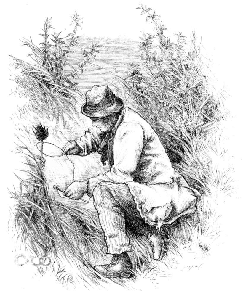 {165}Aware that the most careful observation may fail to find what he wants, the egg-stealer adopts a simple but effective plan by which he ensures against omitting to examine a single foot of the field. Drop a pocket-knife or some such object in the midst of a great meadow, and you will find the utmost difficulty in discovering it again, when the grass is growing tall as in spring. You may think that you have traversed every inch, yet it is certain that you have not; the inequalities of the ground insensibly divert your footsteps, and it is very difficult to keep a straight line. What is required is something to fix the eye—what a sailor would call a ‘bearing.’ This the egg-stealer finds in a walking-stick. He thrusts the point into the earth, and then slowly walks round and round it, enlarging the circle every time, and thus sweeps every inch of the surface with his eye. When he has got so far from the stick as to feel that his steps are becoming uncertain he removes it, and begins again in another spot. A person not aware of this simple trick will search a field till weary and declare there is nothing to be found; another, who knows the dodge, will go out and return in an hour with a pocketful of eggs.