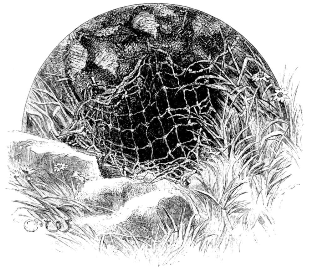 In dry weather the poacher often hides his implements; especially is this the case after a more than usually venturesome foray, when he knows that his house is tolerably certain to be overhauled and all his motions watched. A hollow tree is a common resource—the pollard willow generally becomes hollow in its old age—and with a piece of the decaying ‘touchwood’ or a strip of dead bark his tools are ingeniously covered up. Under the eaves of sheds and outhouses the sparrows make holes by pulling out the thatch, and roost in these sheltered places in severe weather, warmly protected from the frost; other small birds, as wrens and tomtits, do the same; and the poacher avails himself of these holes to hide his wires.{171}