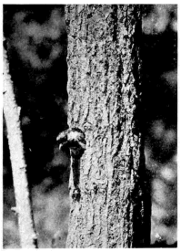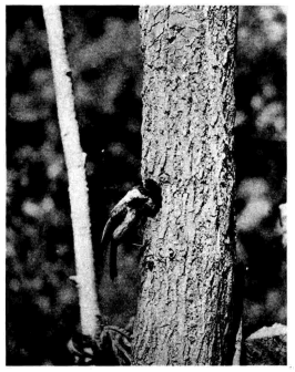 CHICKADEE AT NEST-HOLE, WITH FOOD FOR YOUNG