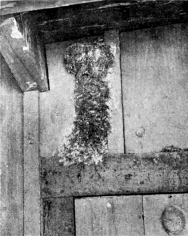 The old ones came and went after the mutilation of their home, just as before, and, indeed, apparently found the new arrangement much more convenient than the old. In one of the photographs here presented, domestic affairs that had before been entirely concealed from view are fully revealed, and had not the plate been light-struck by one of the many aggravating accidents likely to occur in the out-door work of the beginner, the picture would have been the best of the series. The courageous parent is attending to her maternal duties under circumstances which must appear most appalling. The little fellow sitting so contentedly by has undoubtedly had his share of the huge juicy caterpillars, and patiently recognizes that it is not his turn.