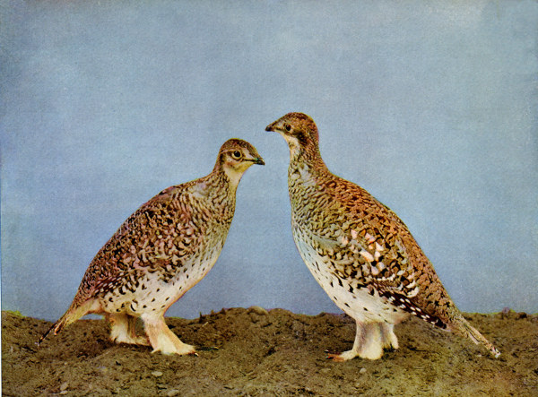 These Grouse place the nest in a tuft of grass or under a low, stunted bush. A hollow in the ground is worked out to fit the body and lined with a few blades of grass arranged in a circular form. The hens attend wholly to the hatching and rearing of the young and are attentive and watchful mothers.