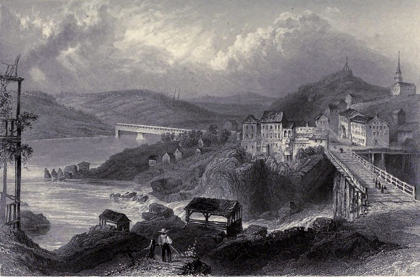 The Huron village of Loretto stands on the left bank of the Charles, about four miles below the lake, (eight from Quebec). The river, immediately on passing the bridge, below the village, rushes down its broken bed of granite, with a descent of about seventy feet, and buries itself in the windings of the deeply-shadowed glen below. A part of the fall is diverted to turn a mill, which seems fearfully suspended above the foaming torrent. The village covers a plot of ground very much in the manner of an English barrack, and altogether the reverse of the straggling Canadian method; it is, in fact, the method of their ancestors. I found the children amusing themselves with little bows and arrows. The houses had generally an air of poverty and slovenliness; that, however, of their principal chief, whom I visited, was neat and comfortable. One of their old men gave me a long account of the manner in which the Jesuits had contrived to trick them out of their seignorial rights, and possession of the grant of land made them by the king of France, which consisted originally of four leagues by one in breadth, from Sillori north. Two leagues of this, which were taken from them by the French government, upon promise of an equivalent, they give up, he said, as lost; but as the property of the Jesuits is at present in the hands of commissioners appointed by our government, they were in hopes of recovering the remainder, which it never could be proved that their ancestor either gave, sold, lent, or in any way alienated.