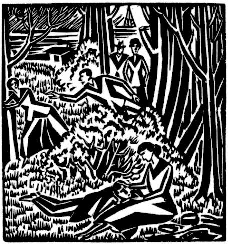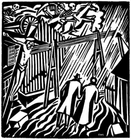 Sie schweigen . . . Regen. Regen. Regen. Der Regen sinkt nieder, nieder und der Abend auch.