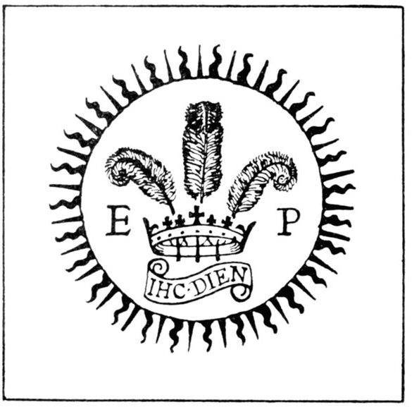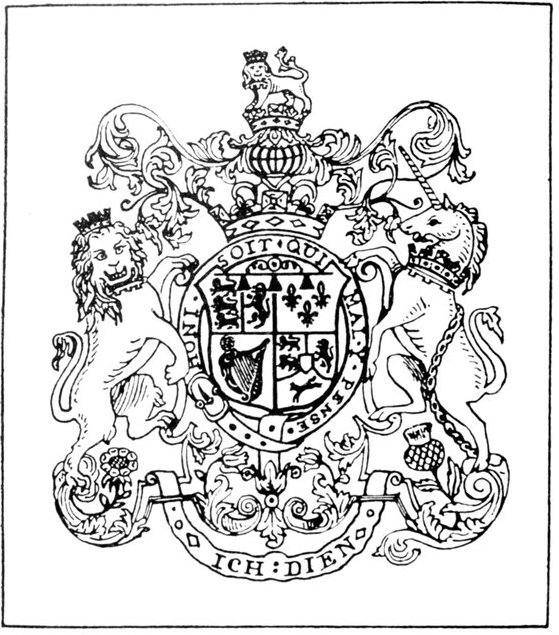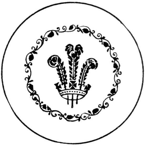 The coronet of the Prince of Wales is the same as the crown of the Sovereign, except that it has only one arch and no jewels. The single arch was granted, for the future, by Charles II.; before that the princely coronet had no arch. The older form of this coronet can still be seen on the Prince of Wales's badge of three ostrich feathers, which are held together by a coronet of the old shape. The three feathers are said to have been the badge of John, King of Bohemia, who was killed by the Black Prince at Crécy in 1346. The motto "Ich Dien" also belonged to the King of Bohemia.