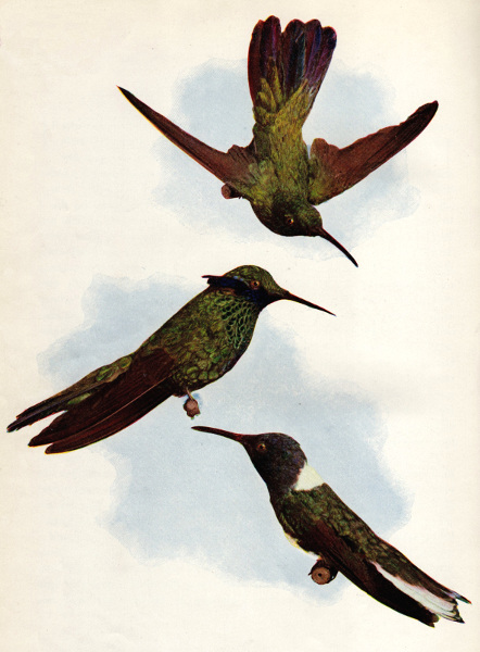 HUMMING-BIRDS—(1) Lampornis gramineus, Venezuela. (2) Petasophora Anais, Columbia. (3) White-tailed Hummer.