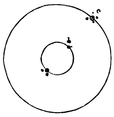 Bradley, the English Hipparchus, the model of observers, as he is styled by Laplace, became the third astronomer royal upon the death of Halley. He had previously effected one of his two great discoveries, the aberration of the stars, an optical illusion, arising from the combined movement of the earth in space, and the progressive transmission of light; a discovery of the highest importance, requiring the greatest precision of observation to detect. Ever since the doctrine of the earth’s translation in space had been received, astronomers had been anxious to find some parallax of the fixed stars, as a sensible confirmation of the fact. Although the whole diameter of the earth’s orbit is relatively insignificant, it is yet absolutely vast. Hence it was deemed no unreasonable expectation that some small apparent change of place in the heavens would be discerned in the case of the fixed stars, when viewed from the two extremities of the earth’s annual orbit—separated from each other by the mighty chasm of a hundred and ninety millions of miles.