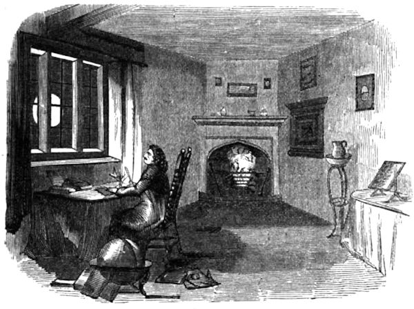The house of Newton at Woolsthorpe, now the homestead of a farmer, has been in the ownership of persons anxious to protect it, and preserve every relic of its former occupant. Stukeley thus described it in 1727: “’Tis built of stone, as is the way of the country hereabouts, and a reasonable good one. They led me upstairs, and showed me Sir Isaac’s study, where I suppose he studied when in the country in his younger days, or perhaps when he visited his mother from the university. I observed the shelves were of his own making, being pieces of deal boxes which probably he sent his books and clothes down in on those occasions.” Two sun-dials remain which he made when a boy; but the styles of both are wanting, and one has been recently taken from the wall to be presented to the Royal Society. The room in which he was born has the following inscription upon a tablet of white marble: “Sir Isaac Newton, son of John Newton, Lord of the Manor of Woolsthorpe, was born in this room on the 25th of December, 1642.” The apple-tree, the fall of one of the apples of which, according to tradition, drew his attention to the subject of gravity, was blown down by a gale some years ago, and a chair was constructed out of its timber. The Royal Society of London possesses his telescope; the Royal Society of Edinburgh the door of his book-case; and Trinity College, Cambridge, has a lock of his silver white hair.