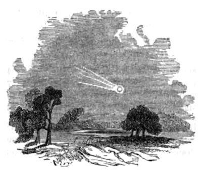 eye had been at rest at B, and the molecule of light had come to it in the direction D, B. The star, therefore, whose real place is at C, will appear at D to the spectator at B. This effect is precisely analogous to what takes place when a person moves or travels rapidly through a shower of rain or snow in a perfectly calm state of the atmosphere. Without locomotion the rain-drops or snow-flakes will fall upon his hat, or upon the head of the carriage that conveys him, and not beat in his face, or against the front windows of the carriage. But if he is passing along swiftly, in any direction, east, west, north or south, the rain or snow will come in contact with his face, or enter the front windows of the carriage if they are open, as though the drops or flakes fell obliquely, and not from the zenith. Now as an object appears to us in the direction in which the rays of light strike the eye, it is easy to understand that a star in the zenith will appear at a little distance from it, to a spectator carried along with the earth in its orbit. This discovery established the fame of Bradley, who was exonerated from all future payments to the Royal Society on account of it; and it is of great importance, as the only sensible evidence we have of the earth’s annual motion. Soon after his appointment to the Greenwich observatory, he effected his second great discovery, that of the nutation of the earth’s axis, a slight oscillation of the pole of the equator about its mean place, describing an ellipse in the period of eighteen years. He determined likewise its cause, which theory had previously inferred to be the action of the moon upon the equatorial regions of the earth. Some idea of his industry may be formed from the fact, that in conjunction with his nephew, he made no less than eighteen thousand observations in a single year while astronomer royal; and the number from the year 1750 to 1762 amounted to upward of sixty thousand. The death of Bradley was interpreted as a Divine judgment by the populace. He had taken an active part with the Earl of Macclesfield and others, in urging on and assimilating the British calendar to that of other nations. This rendered it necessary to throw eleven days out of the current year in the month of September 1752—a measure which the ignorance of great numbers of the people led them to regard as an impious intermeddling with the Divine prerogative. Lord Macclesfield’s eldest son, at a contested election for Oxfordshire, was greeted with the cry from the mob, “Give us back the eleven days we have been robbed of!” and Bradley’s mortal sickness, some years later, was viewed as a punitive dispensation for having participated in the sacrilegious theft.