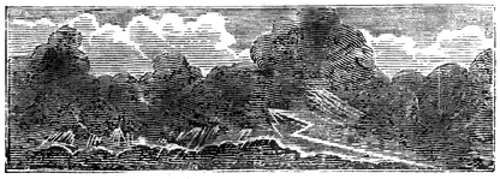 Knowledge of Electricity enables man to stand in comparative safety amid the awful war of the elements. Lightning, the offspring of electricity, has a tendency to strike upon lofty objects by which it may be attracted. By its mighty powers churches or houses may be instantly levelled with the dust. But man, knowing that electricity is strongly attracted by particular substances, raises over lofty buildings rods of steel communicating with bars that descend into the ground. The lightning, rushing with indescribable force toward the steeple, is attracted by the bar of steel, and conducted harmlessly to the earth. Man may thus be said to take even lightning by the hand, and to divert its destroying force by the aid of Knowledge. And in countless other instances "Knowledge is Power."