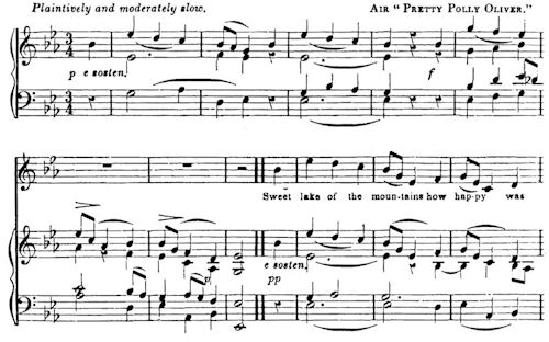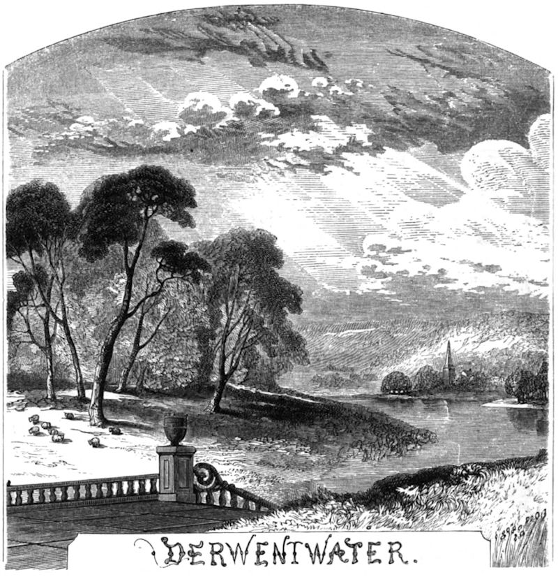 [The sad story of the Earl of Derwentwater, executed in 1716 for participation in the rebellion of the previous year, is well known. The beautiful lake from which he derives his title is surrounded by some of the grandest scenery in England. Few persons will need to be reminded of the beauty of the small cataract of Ladore. The memory of the misfortunes of Lord Derwentwater, and of the beauty of his disconsolate countess, is is still preserved in the traditions of the neighbourhood.]