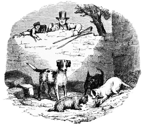 As I have just talked about a keeper “going his rounds” to examine his traps, it would be wrong not to mention the serviceable “Snap,” a white, short-haired terrier belonging to a gamekeeper of Mr. R——e’s, who for many years has sat as member for Dover. The little animal’s personal qualities are far inferior to his mental, for even his master, with all his well-known partiality for his petted companion, cannot call him handsome; but he has a right to quote in the dog’s favour the old saying, “Handsome is as handsome does.” Besides other ways of rendering himself useful, “Snap” willingly considers it a standing rule that he is to start off alone every morning after breakfast to take the tour of all the traps. On his return to the lodge, if he has no report to make, he maintains a discreet silence; but if any of them are sprung, by vermin or otherwise, he loudly proclaims the fact, and leads the keeper, whose time and legs he has thus cleverly saved, direct to any spots requiring his personal attention.