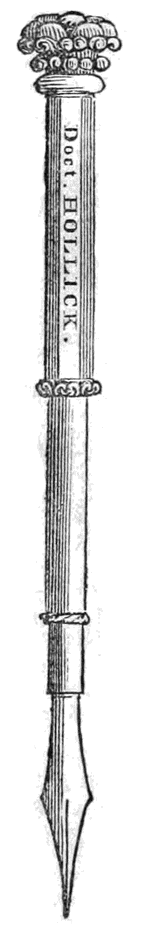 This is the only Instrument of the kind ever invented, and certainly the only one that can cure Falling of the Womb; or be worn with ease, to relieve it, when incurable. Dr. Hollick is the only person who keeps it, as he has no Agent any where, at present.