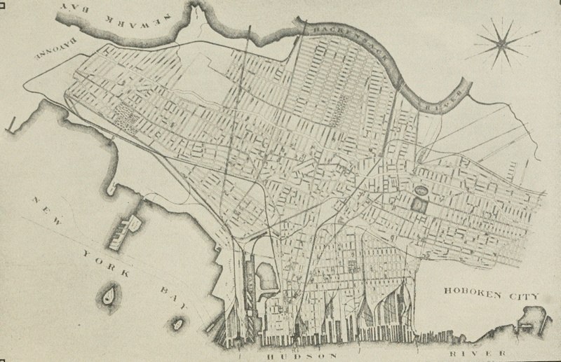 In the fall of 1609, Hendrik Hudson anchored the "Half Moon" off Communipaw, and the simple natives met him and said "Behold the Gods have come to visit us." Little they dreamed of the long sequence of evil results which would follow his coming and the introduction he gave them to "rum," the most potent destroyer of their race. When Hendrik Hudson anchored off Communipaw, where lower Jersey City now stands, it was largely salt marsh, and the heights above were crowned with heavy forests.