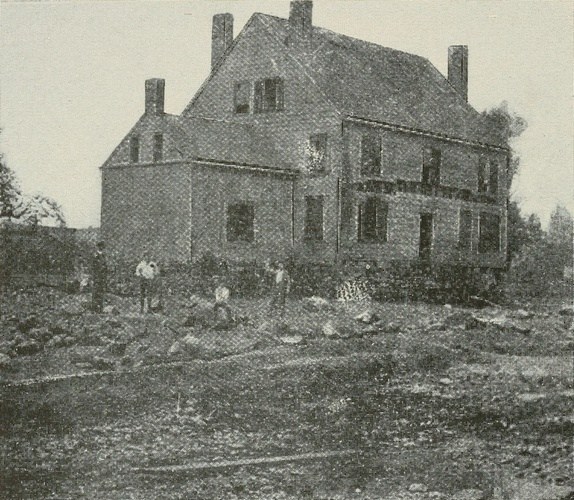 Another very interesting old place was the Tonnele homestead, built in 1837-8. In 1835 Mr. Tonnele bought the old Dr. Hornblower place, on the west side of Summit avenue, a ten-acre plot, extending from a little south of what is now Magnolia avenue to the center of what is now Pavonia avenue, where it joined a Van Reypen farm. Dr. Hornblower served in the Revolution, having joined the army from Belleville. After the war he studied medicine, and came to this locality in 1789, and began the practice of medicine—the first doctor known to have practiced in Jersey City. He married, and built a house about the[Pg 142] center of the block between Pavonia and Magnolia avenues. The date of building is not known, but probably it was about the beginning of the century. The house had a wing on either side—one used as an office, and the other as a kitchen. After Mr. Tonnele bought the property he removed the main part of the house to its present location on the southwest corner of Magnolia and Summit avenues, leaving the wings for a lodge and gardener's cottage. Along Summit avenue he built a high stone wall with iron gates, about where the old house had been. Inside the wall was a hawthorn hedge and a row of mulberry trees. A driveway, bordered with cherry trees, extended from the gate and around a circular lawn in front of the house, which stood on the west side of the grounds. It was built of trap rock, some forty feet square, three stories and basement, with a wide veranda in front. A wide central hall with large rooms on either side. The ceilings were beautifully frescoed, the mantels were of Sienna marble, and the doors of solid mahogany. It also was heated from a great stove in the hall and grates in the rooms. It is said that John Kelly, the Tammany Sachem of New York, put the grates in the house. The grounds were beautifully laid out, and many of the fruit trees were imported from France. The furniture for the house was made by a Frenchman in New York.