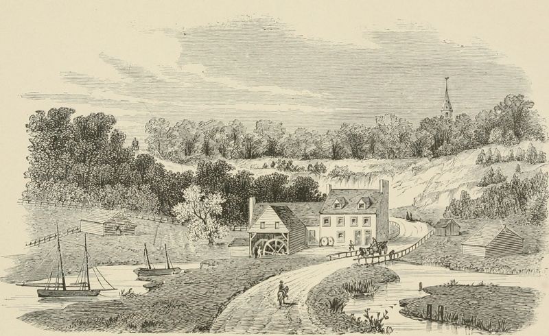 On September 8th, 1660, Jaques Cortelyou was ordered to survey Gemoenepa and lay it out into village lots. The village site fronted on the Bay, was two hundred feet deep and extended from what is now Communipaw avenue on the north to the Bay Shore House on the south. The Council ordered that the village should be stockaded, but there seems to have been numerous delays, for in June, 1663, Gerrit Gerritsen, Harman Smeeman and Dirck Claussen were appointed commissioners to fortify Gemoenepa. May 9th, 1661, Egbert Sandersen and Jan Theunissen, inhabitants of Midwout and Amersfoort, L. I., petitioned for leave to erect a saw-mill on a stream at Gemoenepa and move their families there and for a lot of land for each. The request was granted and probably they erected a mill below the Point of Rocks on the stream formerly called the Creek of the Woods and "Creek of the High Woodlands." In papers of 1671, the mill is mentioned as the "Mill of Hossemus;" probably from this mill the creek received its name of Mill Creek. Later Priors Mill was built upon this site and remained until removed and the creek filled in when the cut was made for the Pennsylvania railroad in 1837. In October, 1661, Sandersen asked permission to erect a saw-mill on Showhank Brook; this creek had its rise in an Indian spring in West Hoboken; it ran south until it reached the point where New York avenue crosses Palisade avenue; thence it turned down the hill[Pg 23] through a wild ravine and emptied into Mill Creek. There was a saw-mill on this stream at the foot of the hill, until it was destroyed by fire in 1835.