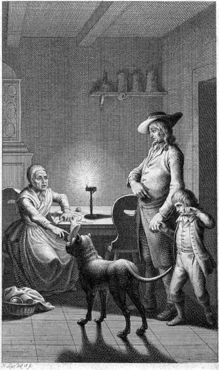 Ich war um die Zeit ein Junge von dreyzehn Jahren. So lange ich denken konnte, hatte ich mich unter den Augen meines Papa und Marthens befunden, und wußte nicht anders, als daß ich Papa's Sohn sey, meine Mutter aber in früher Kindheit verloren habe. Munter und lustig, wie man in diesen Jahren immer ist, war ich im höchsten Grade, und vielleicht manchmal zu lustig; denn alle Augenblicke lief Klage über mich ein. Bald traf ich mit der Schleuder so gut und geschickt in die Fenster unsers Nachbars, daß ihm die Scheiben auf die Nase sprangen; bald kletterte ich in seinen Garten und machte mich über seine Blumen, Aepfel, Birnen und Kirschen; bald hatte ich Pastors Wilhelmchen links und rechts geohrfeigt, und bald unsern Kantor einen Saufaus geheissen.