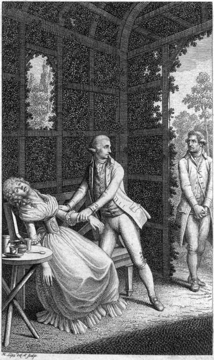 Sie rückte leise einen Stuhl vors Bette, setzte sich darauf, und legte ihren rechten Backen auf meinen linken. Mein Backen brannte wie Feuer, und erhitzte nach und nach den ihrigen, der anfangs sehr kalt war. So blieb sie eine Weile liegen, ohne einen Laut von sich zu geben.