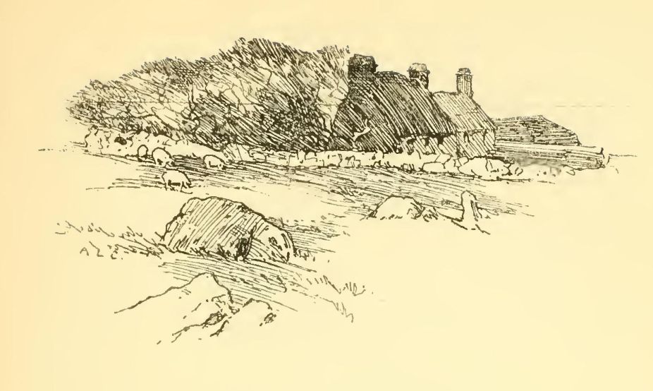 There is very little cultivation—hardly more than is required for the use of the farm, and in many fields even this little is carried on under difficulties on account of the stones. The stones are taken out and piled on to the walls or hedges at the side, and though this process has been going on for centuries many boulders and huge blocks of granite still remain in the little fields. I was amused one day at the sight of a field of only about two acres on which I counted 135 stones appearing like huge mushrooms and toadstools over the ground. Corn had been grown on it, and I asked the farmer how it was managed. He answered that he would laugh to see a man and horses from any other part of the country try to cultivate that field and others like it. Here the men are used to it, and horses know their part so well that if the share touches a stone they stop instantly and wait for the ploughman's word to move on.
