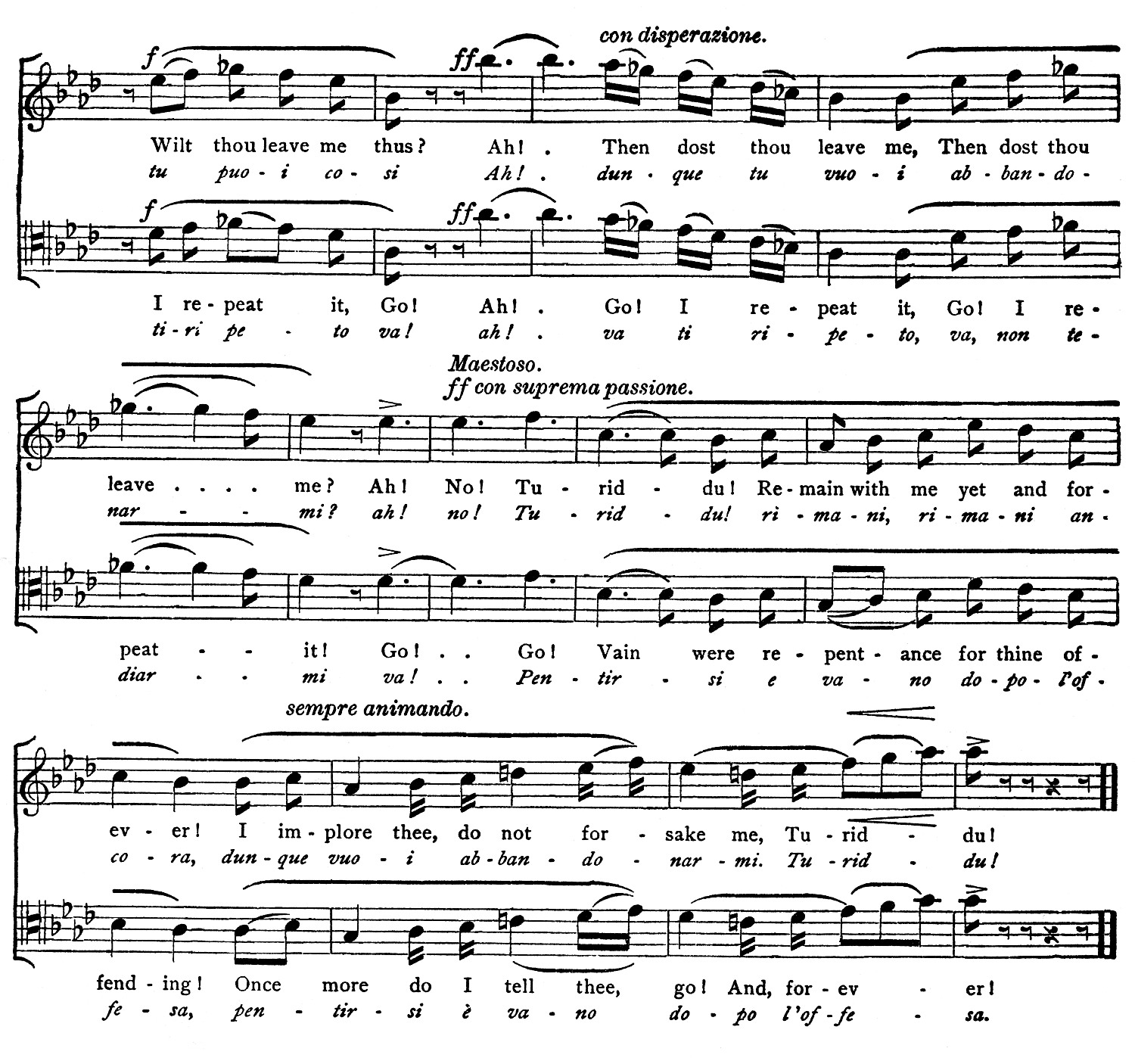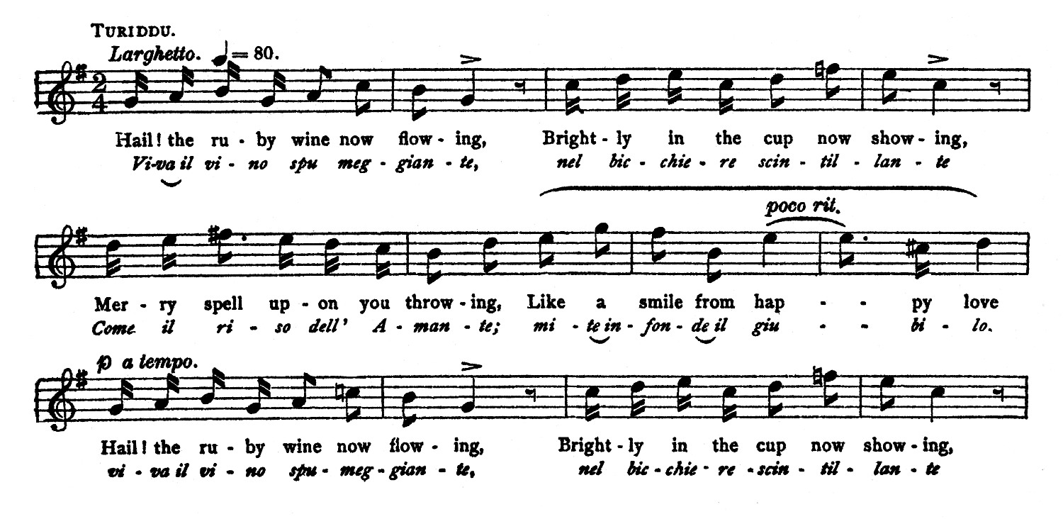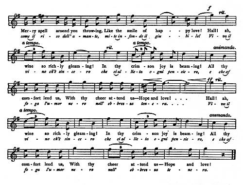 3. The vocal part of the score is reproduced after the score as text, the English words first, followed by the Italian.