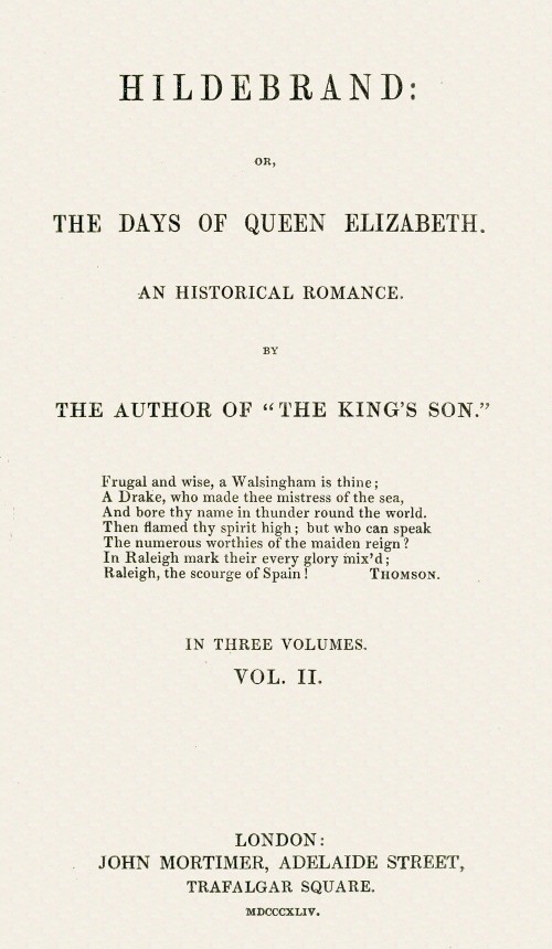 Title: Hildebrand; or, The Days of Queen Elizabeth, An Historic Romance, Vol. 2 of 3