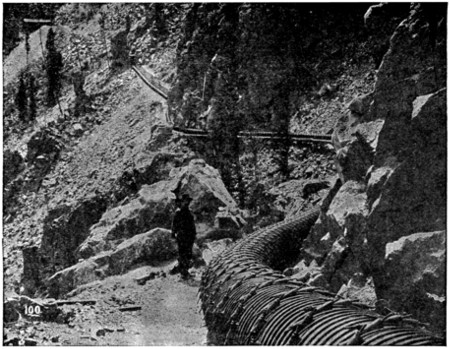 From Spier Falls to Albany the electric line is forty miles in length. Hamilton is thirty-seven miles from that point on the Niagara escarpment, where its electric power is developed. Between St. Paul and its electric water-power station, on Apple River, the transmission line is twenty-five miles long. The falls of the Missouri River at Cañon Ferry are the source of the electrical energy distributed in Butte, sixty-five miles away. Los Angeles draws electrical energy from a plant eighty-three miles distant on the Santa Ana River. From Colgate power-house, on the Yuba, to San Francisco, by way of Mission San José, the transmission line has a length of 220 miles. Between Electra generating station in the Sierra Nevada Mountains and San Francisco is 154 miles by the electric line.