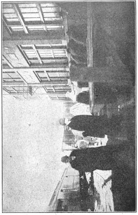 At the close of the first day's work the prisoner is marched to his cell. Just inside the entrance to the cell house he is handed his supper in a tin dish, goes to his cell, previously assigned to him, and remains standing with his right hand on the cell door until the evening count of the number of prisoners in the institution has been verified by the deputy warden. If the count is correct the prisoners are notified by the sounding of a gong near the desk of the cellhouse captain, at which signal they are permitted to sit down and amuse themselves as they see fit. Immediately after the ringing of the gong [pg 25 ] the gallery men pass around tea for the prisoner's evening meal in addition to what he received when he enters the cellhouse.