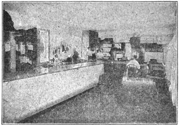 At first the “fresh fish” makes quite a number of mistakes: In the dining room he is somewhat bewildered as to how to make his wants known to the waiters, as he has been told that talking is strictly forbidden, but upon reading the rules in the library catalogue he easily comprehends the silent method of asking for food. If he wishes bread he must hold up his right hand; meat, his fork; soup, his spoon; vegetables, his table knife; coffee, his cup, and for water, the rule is to hold up the cup inverted. This form of the sign language is fully adequate for the situation.