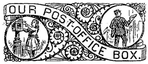 Correct answers to puzzles have been received from A. E. Cressingham, "School-Boy," Bennie Stockwell, Emilie Douglass, Willie D. Grier, Day Z., Robert N. Fuller, and Jemima Beeston.