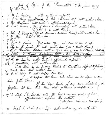 | Facsimile of Lowell’s List of Friends to whom he presented copies of Conversations on the Old Poets. “The Don” was Robert Carter | facing 92 |