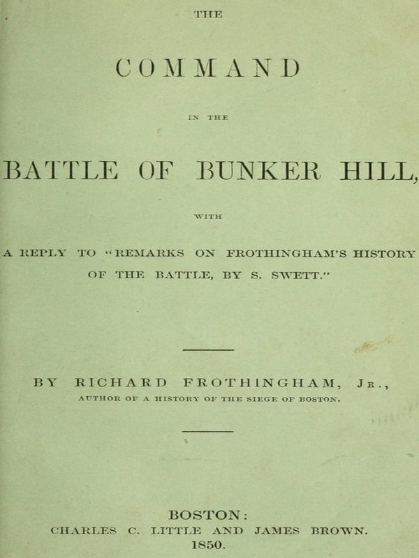Mr Samuel Swett has published a pamphlet entitled—"Who was the Commander at Bunker Hill. With Remarks on Frothingham's History of the Battle, with an Appendix," in which he labors to overthrow this conclusion, and to establish the position that General Putnam was the authorized and general commander. Mr Swett is one of the old partizan writers on this subject. He began to write at a time (1818) when there was much excitement relative to the battle. The Analectic Magazine for February of that year had an account of it; the Port Folio for March had General Dearborn's extraordinary article, which opened up the long, bitter, and not yet closed controversy about General Putnam; Daniel Putnam's able and interesting letter soon (May) followed, marked by curious anecdote as well as by the indignant rebuke which filial duty dictated; General Dearborn (June) issued his "Vindication" with its imposing array of documents; in July, Hon. John Lowell made his thorough 6 defence of Putnam's character, in the columns of the Centinel, and Hon. Daniel Webster, in the North American Review, contributed an invaluable article, drawing with indelible lines the characteristics of the battle, and defining, with remarkable accuracy, the positions of Putnam and Prescott; the subject had got mixed with party politics, and for six months the press had teemed with articles on one side or the other. It was, then, at an unfavorable period for healthy investigation, and after such a surfeit of the subject, that Mr Swett "from his attention to military subjects," "consented to describe the battle." He commenced his researches in July, finished them in August, and early in September was ready to favor the public with his "Historical and Topographical Sketch of the Battle of Bunker Hill." This account made up, in great part, from oral or written communications of actors in the battle, and framed with the theory that General Putnam was the commander, was regarded as of a partizan character. It was immediately criticised unfavorably in the Boston Patriot, in a series of essays which subsequently appeared in pamphlet form, in which the main object is to show that Putnam was not even in the battle. Mr Swett has continued his researches, printed two editions of his history, and several times appeared in defence of it. His statements relative to the formation of the army and the battle have found their way into most of the books. It is no injustice to the authors of subsequent excellent accounts of the battle to remark—for it is acknowledged—that as to the details they do not go behind Mr Swett's account. The narrative in the Siege of Boston does. It is based, as much as possible, on contemporary documents, and, in its details, will be found to differ in many respects from those of the same period in Mr Swett's History. A study of the conflicting evidence relating to this subject, however, ought to excite charity rather than dogmatism; and it was no purpose in preparing the Siege of Boston to make of its pages a pillory of error for a respected pioneer enquirer. Let the language relative to him to be found there, say whether much was done at the poor business of disparagement, or whether just credit was withheld. Mr Swett, however, has had possession of this field so long, that, perhaps, it is not strange he should regard facts which fearfully disturb old opinions as errors; or that a conclusion as to the commander which conflicts with a prepossession which for thirty years has proved invincible, should be contested. But the spirit, tendency and object of the "Remarks" are too obvious to be misapprehended.