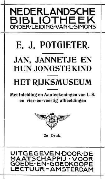 Na deze algemeene opmerkingen zullen een paar over de twee werken zelf moeten volgen. Aanvankelijk lag, laat ik het vooropstellen, alleen het geven van een geïllustreerde uitgaaf van het Rijksmuseum in het door een onzer abonnés geopperde plan. Maar de allegorie van JAN, JANNETJE EN HUN JONGSTE KIND, op oudejaarsavond van 1841 geschreven, is zoozeer het praeludium tot het langere opstel geweest,—dat ik toch eigenlijk niet kon nalaten haar te doen voorafgaan. Jan en Jannetje—dat zijn de figuren, waarin P. zich ons Holland uitbeeldt, vader en moeder van een talrijk kroost. De figuratie lag als voor de hand voor zulk een goed kenner van onze taal als Potgieter. We kennen immers allen Janmaat en Jan Compagnie; we kennen Jan Hen, Janhagel, Jankalebas, Jan Klaassen, en al in de 17e eeuw immers had W. D. Hooft in zijn klucht van Jan Sali dezen naam tot kenschets van een sukkel gebruikt! Potgieter had de groep maar te voltooien—en hij deed het met vernuft, met valsch vernuft ook wel (maar dat is de verleiding van het genre!) en, vooral, hij deed het met den zin van den kleurrijken schrijver, die oud-hollandsche binnenhuizen met de pen weet te schilderen, en uit het gemoed van èen, die Jan en Jannetje hartelijk liefhad, en die in Jan Salie hun en zijn ergsten vijand wist. Alles heeft de sukkel, de machtelooze, de durfniet voor Jan en de zijnen bedorven: Jan's macht ter land en ter zee; Jan's handels- en ondernemingslust; Jan's open levenszin, Jan's letterkunde, Jan's tooneel, Jan's kunst—en hartgrondig moet het er uit: „Ik schaam me dat ik zijn vader ben!—Moeder, morgen moet Jan Salie naar een hofje!”—We zien de vergelijking tusschen de 17e en de 18e en 19e eeuw, die het eigenlijke thema voor het Rijksmuseum zal worden, al in de kiemen zich ontwikkelen; naar Vondels zegswijze is 't, of in deze oudejaarsbespiegeling: „het zaad voor het toekomende (stuk) is gezaaid!”—Vooral de kennis en waardeering van Vondel, Hooft en Huygens boven Cats, straks zoo uitvoerig uit te werken, gaan al spreken. Als we nu Cats hebben leeren vergeten, Huygens waardeeren, van Hooft en Vondel genieten—we hebben er zeker niet weinig Potgieter voor te danken, al meten we weer onzen afstand van hèm er aan, dat alleen-kernigheid en vroomheid, die samen hèm tot Huygens trokken, òns minder zeggen dan Hoofts gevoelige beeld-taal, dan Vondels grootmogendheid over taal, gevoel, verbeelding.—