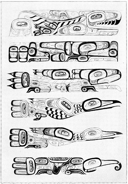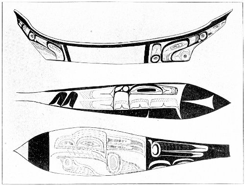 Now in Ghost Land there are many towns, and many houses in each town. So if a man is looking for his wife there, it may take him a long time. These towns 3 lie in numberless inlets, near the water, just as the Haida towns on earth do.