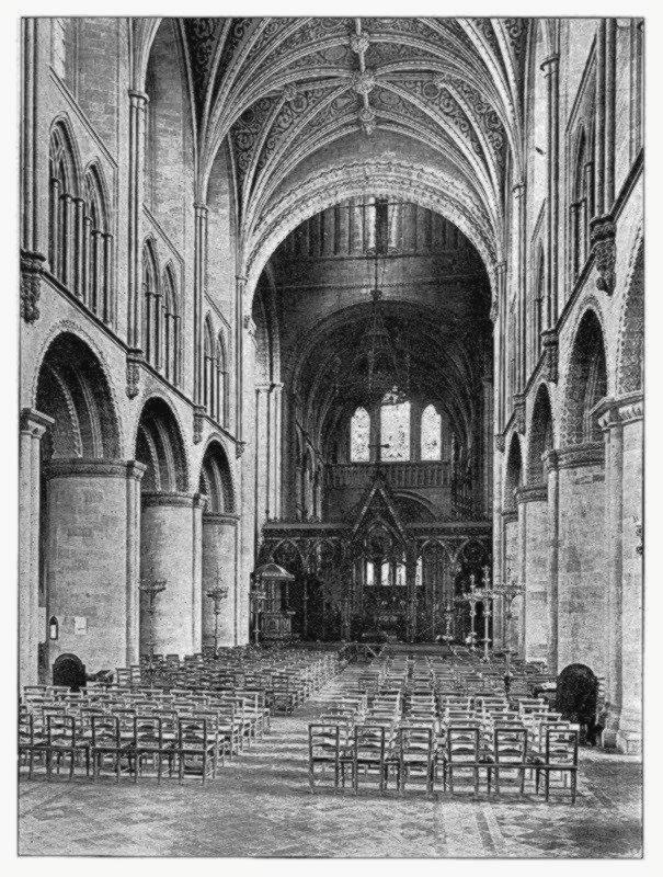 Then followed the building of the nave, the Lady-chapel, the north transept, and the tower, until, some four hundred years after Bishop Losinga had begun it, the great church was completed, and stood much as it stands to-day, except that a wooden spire surmounted the square tower of stone.