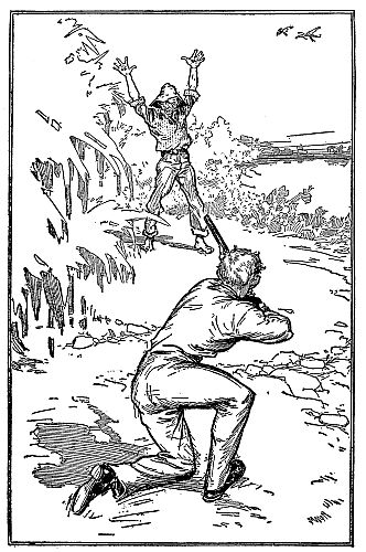 An instant after the red flash leaped from the muzzle of the rifle this steersman on the other craft “ducked” suddenly, crouching for a few seconds before he ventured to rise.