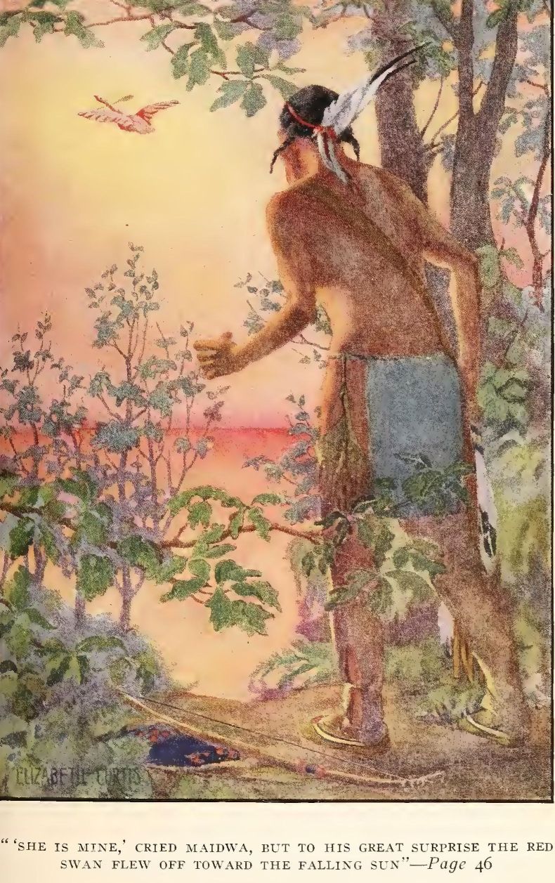 When she had made the weapons, which, though they were very small, were beautifully wrought and of the best stuff the field and wood could furnish, she again cautioned him not to shoot into the lake.