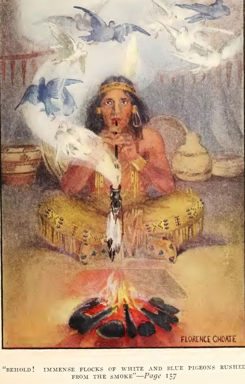 Although of a lowly condition and straitened in his circumstances, he was a man of kind and contented disposition. He was always thankful to the Great Spirit for everything he received. He even stood in the door of his lodge to bless the birds that flew past in the summer evenings; although, if he had been of a complaining temper, he might have repined that they were not rather spread upon the table for his evening meal.