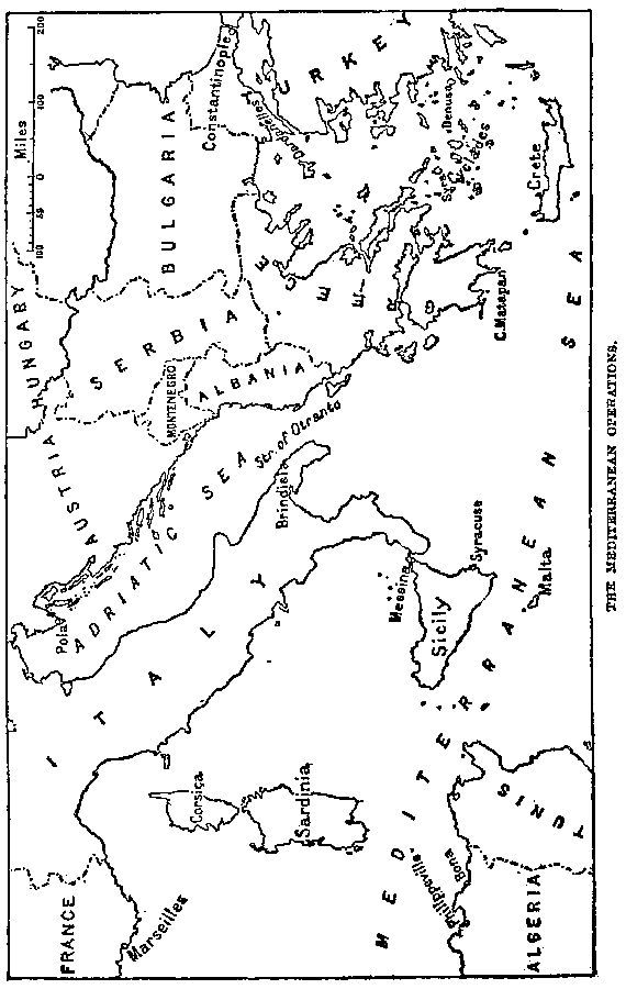 “Have we not reached another conclusion,” I put in, diffidently, “namely, that big-ship actions must be indecisive unless the light be good and the sea space wide enough to allow of a fight to a finish? We can’t bring Fritz to a final action in the lower part of the North Sea unless we can cut him off entirely from his avenues of escape. In the Atlantic, a thousand miles from land, we could destroy him to the last ship—if our magazines held enough of shell—but as he can choose the battle ground, and will not fight except near to his bases, we can shatter him and drive him helpless into port, but we cannot wipe him off the seas. Is that proved?”