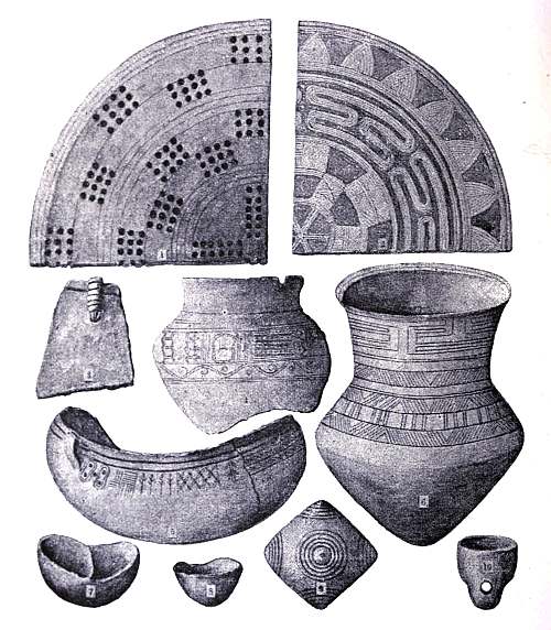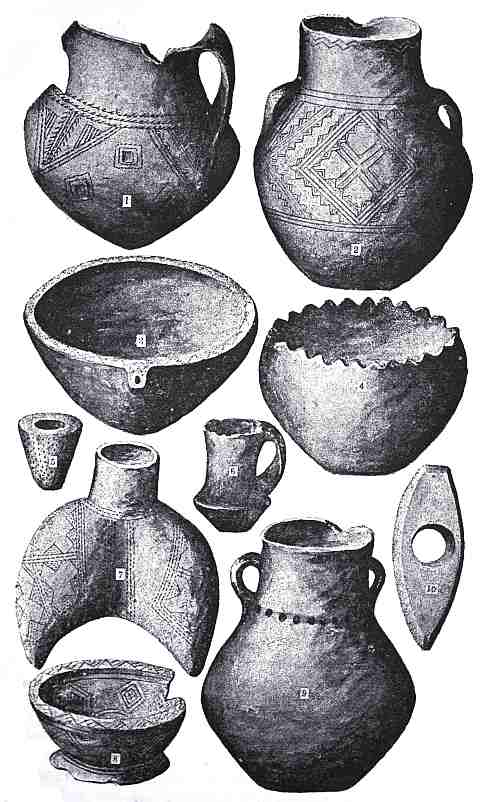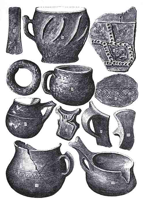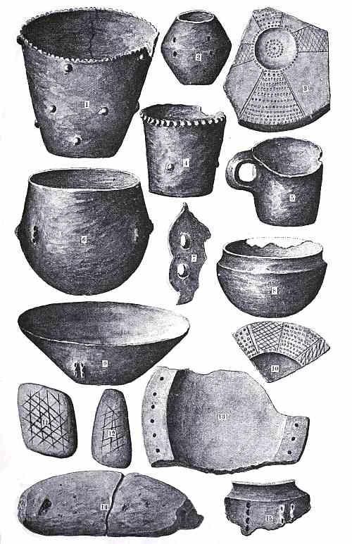 Since then, however (1878), the results of lacustrine researches have been greater and more important than during any previous corresponding period. The "Correction des Eaux du Jura," together with various harbour alterations in the lakes of Zürich, Geneva, etc., have been the means of enormously increasing the lacustrine collections of Switzerland. In North Italy not only have new and remarkably interesting lacustrine stations been discovered and exhaustively investigated, as Lagozza and Polada, but the researches in the terremare have been such as to entirely alter the previous opinions held in regard to them. Nor has the progress in this field of research in many other countries in Europe been scarcely less important, in proof of which I have only to mention the additions made to the Scottish and Irish crannogs; the curious fascine structures brought to light in Holderness, Yorkshire; the novel revelations extracted from the terp mounds in Holland and other low-lying districts on the coast of the German Ocean; the greatly extended and more accurate details of lacustrine structures in North Germany; the discovery in Hungary of prehistoric mounds analogous to the terramara deposits of Italy, etc. In short there is hardly any corner of the lake-dwelling [Pg vii] area in Europe which has not yielded new materials, throwing more or less light on this strange phase of prehistoric life.