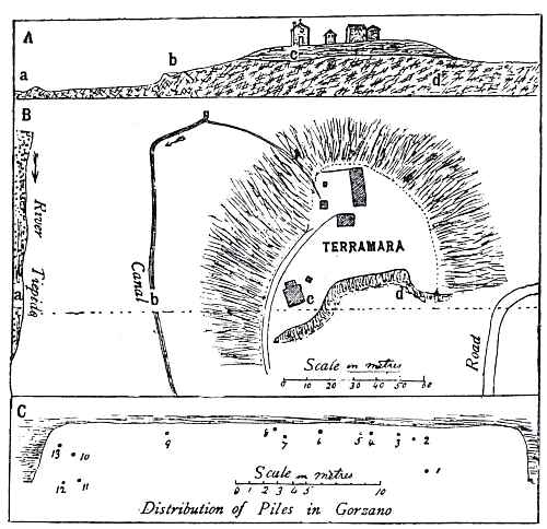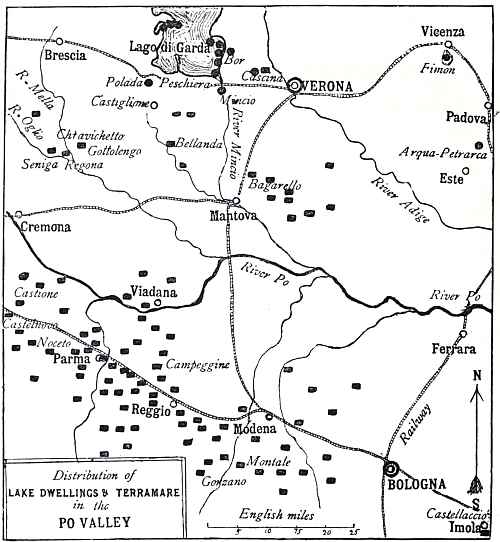 Excepting the well-known reports of Keller and a few monographs on particular stations or districts, the entire literature of the subject may be said to lie buried in the Transactions of learned societies. Having to hunt up and peruse most of these obscure and almost inaccessible articles—the number and extent of which may be estimated by a glance at the accompanying bibliography—it occurred to me that, by tabulating all the works and notices of these researches in chronological sequence, under the names of their respective authors and with correct references to their published sources, I might be conferring some benefit on future investigators, while supplying myself with a simple and ready means of referring to authorities, without the necessity of having to repeat over and over again the voluminous titles of publications. Hence the origin of the bibliography appended to this work, which, however imperfect, will, I trust, considerably enhance its value. Its compilation has given me a great deal of trouble, and the only valuable assistance I derived from [Pg x] other publications of the kind was from Pigorini's "Bibliography of Italian Archæology," which, unfortunately, comes down only to 1874.