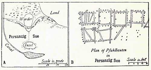 The lake-dwelling area thus surveyed comprises all the remains that can unequivocally be said to belong to the primary development of these structures in Europe, their period of existence being almost exclusively confined to the prehistoric ages of Stone and Bronze. Such being the case, this might be a suitable opportunity for [Pg ix] offering some general remarks on the culture and civilisation of their inhabitants; but this I defer to the final lecture, thinking it preferable before doing so to acquaint my readers with various details of analogous remains brought to light in other districts in Europe. Accordingly in the fourth lecture we continue our geographical wanderings. Again starting in Switzerland we discuss the peculiar remains found in La Tène, almost the only exception to the ordinary Pfahlbauten of the Stone and Bronze ages encountered in our previous tour; and thence, moving northwards by the lower Rhine district, we pass to North Germany, where we meet with settlements apparently belonging to all ages. The fifth lecture is exclusively devoted to an exposition of the crannogs and lake-dwellings within the British Isles. In these five lectures we have thus surveyed the entire area in Europe in which the remains of ancient lake-dwellings have been discovered in modern times.