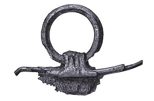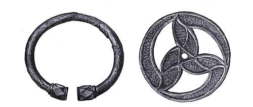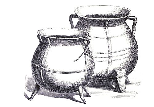 [75] Three iron pots were found on this crannog, one of them being of a triangular shape.