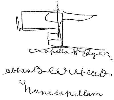 9 The ancient "Book of Melchin" (now lost), quoted by John of Glaston, says of Joseph of Arimathea: "Amongst them Joseph of Marmore, named of Arimathea, receives perpetual sleep; and he lies in linea bifurcata near the south corner of the Oratory which is built of hurdles." "Linea," according to Ducange, means "an under-garment," and "bifurcata" would denote one slit at the sides like a shirt or dalmatic. But our script seems to suggest rather "a fork in the paths" as the place where Joseph lay.