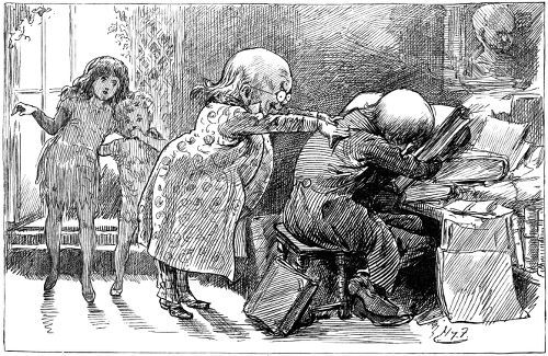 “He only came back last night,” said the Warden, when the kissing was over: “he’s been traveling post-haste, for the last thousand miles or so, in order to be here on Sylvie’s birthday. But he’s a very early riser, and I dare say he’s in the Library already. Come with me and see him. He’s always kind to children. You’ll be sure to like him.”